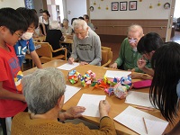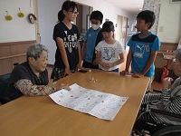 入居者様は小学生との触れ合いで、とても笑顔でした。