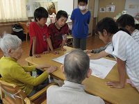 小学生がゲームを考えてきてくれて、入居者様と一緒に行いました。