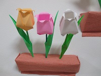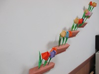 1階のフロアには、職員が折り紙で手作りしたチューリップの花が、綺麗に飾られています。