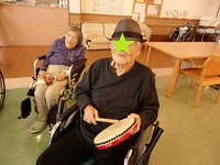 季節の歌や、指の体操から頭の体操で脳の活性化を促し、楽器を鳴らしたりと充実した1時間でした。