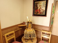 介護スタッフが、玄関に季節にちなんだものを飾ってくれました。
