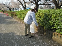 桜舞い散る中、お花見の残骸を拾いました。