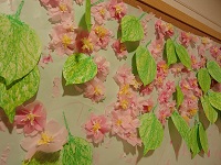 以前作ってくれた桜いっぱいの壁装飾ですが、さらに進化し、葉桜となりました。