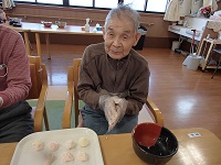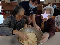 白玉粉に絹豆腐を混ぜ、喉越しが柔らかい白玉だんごを入居者様の皆様と作って食べる企画でした。