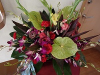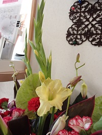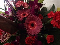今週届いたフラワーアレンジメントは、ワインレッドのガーベラが主役です♪