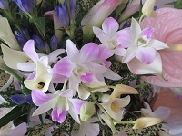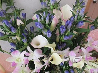 今回は淡いピンクと紫でまとまっていて、刺し色のブルーが涼しげで清らかな印象となっております。