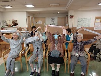 メディス北越谷では、昼食前に口腔体操を行い、唾液の分泌を促し、また誤嚥予防に努めております。