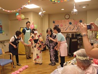 ファッションショーの後は盆踊りを踊り、おやつを頂きました。
