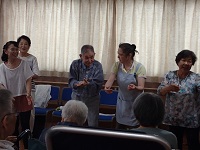 さて、7月15日(土)は第3土曜日でしたので、毎月恒例の民謡ボランティアの日でした。