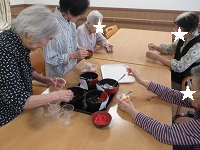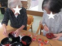 女性の入居者様が多かったので、皆様手際よく盛り付けなさっていました。