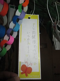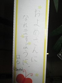 先日、小学生の体験学習の際、お子様達に七夕の短冊に願い事を書いてもらいました。