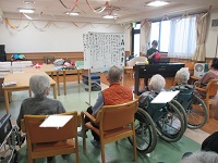 「春」や「さくら」など季節の歌に始まり、指の体操や楽器などバラエティーに富んだプログラムでした。