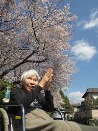 先週から桜が見ごろを迎え入居者様をお外にお連れしお花見をいたしました!
