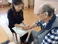 昨日2月15日は、ボランティアの橋本さんに来訪いただき、アロマオイルを使用したハンドマッサージを行っていただきました。