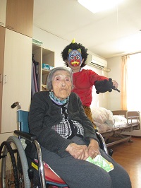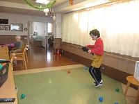 鬼に豆ならぬ、ボールをぶつけて『福は内~、鬼は外~』。