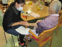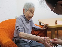 ボランティアの橋本さんにハンドマッサージを行っていただきました。