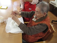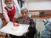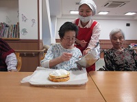 きれいにできないと遠慮して控えめな入居者様もいらっしゃいましたが、出来上がったケーキを見ると、皆様満面の笑みで拍手して喜ばれておりました。
