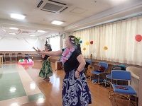 一方「北越谷フラチーム」は、最初のフラダンスチームの踊りに魅了され、一緒に踊ってもらいました♪