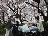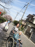 いつもはお部屋で過ごす人工呼吸器の方も、今日はお花見に!!久しぶりに外気に触れ、とても喜ばれていました。
