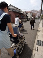 ちょっと風が強い日でしたが、明日から天気も悪くなるかも・・と入居者様を順番にお花見にお連れしました。