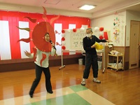 楽器はマラカス・鈴・ナルコ ○○様:麻痺のある手は鈴・麻痺のない手はナルコ・・・