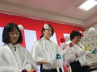 「りんごの唄」では「りんご」の単語が出てくるたびにリンゴを体に貼り付けたり、