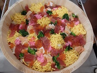 お昼は・ちらし寿司・揚げたて天ぷら・・・施設長が作りました。美味しかったです。