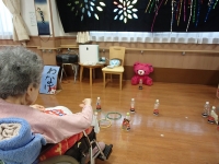 手作りボーリングです。思いのほか力強く、ストライク続出!