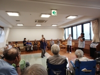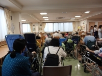 鶴の家草加・シーハーツ越谷・メディス越谷蒲生の入居者様が来てくださいました。我が施設一押し!「レクマスター」スタッフが、皆様をカラオケの世界に・・・・。