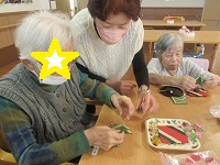 出来上がった作品は3階のラウンジのテーブルに飾ってあるので、面会時に気にしてみていただければ
