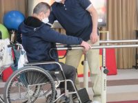 車椅子から立ち上がる練習を