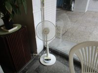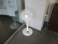 簾で出来た日陰にプラスして、両角に扇風機を設置いたしました。
