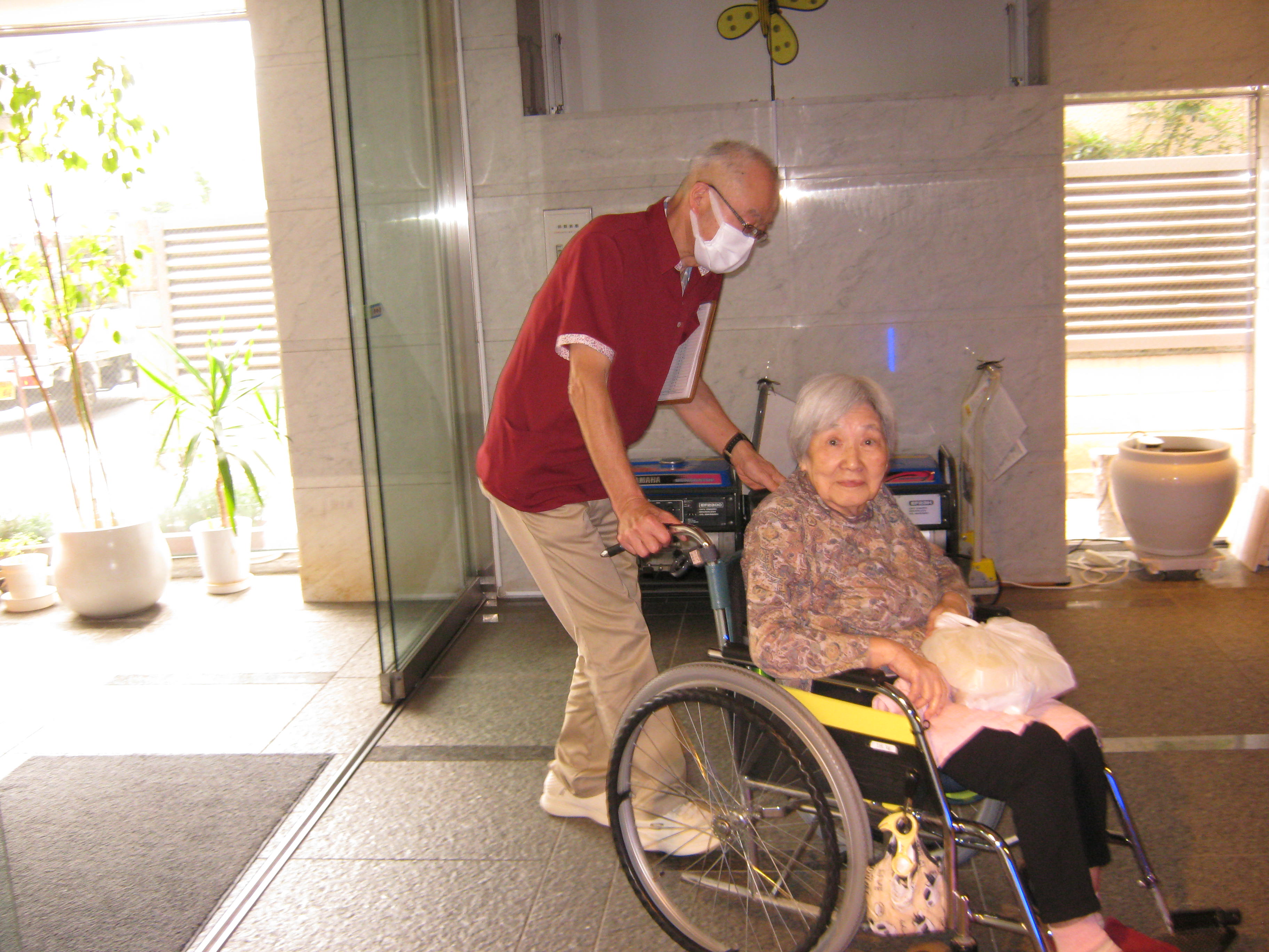 介護員の平井さんが、ご利用者様と一緒に