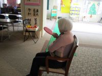 個別機能訓練の入居者様は卓球ボールの練習です。