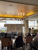 フロアを覗きに行くと、スタッフとご入居様が何やらダンス?か何かをされているので1枚