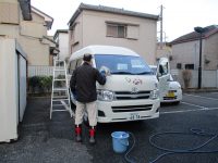 営繕スタッフが寒い中送迎車の洗車をしてくれています。