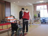 リハ室を覗くと、訓練中の方がいたのでカメラを取りに戻り戻ってみると、ちょうど訓練が終わってしまい訓練後のマッサージになっていました。それでもカメラを構えると、リハのスタッフから「遅いですよ。マッサージをしているだけみたいに見えるじゃないですか」と、言われてしまいましたので、立ち上がり訓練などをされていましたと言うことを言葉で載せておきます。