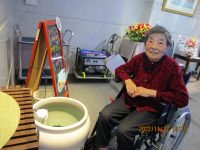 リハビリ後の一息、散歩に出られる方、リハビリ室で育てている二十日大根の成長を眺められる方と色々