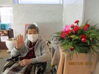リハビリを終えて、リハスタッフと散歩に出て戻ってくると、ロビーの花が代わって綺麗ね!