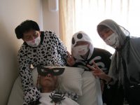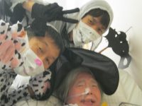 スタッフが仮装して訪れ、ビックリされているところで、あれよあれよという間に仮装させられ戸惑っている間に写真を撮って去っていくスタッフたちでした。