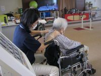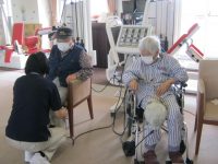 膝に電気をあてて、その間にリハスタッフから上半身のマッサージ