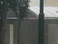 普段は雨の様子を写真に撮ってもあまりきれいに取れないので地面に打ち付ける雫を撮っていたのですが、何気に撮った写真、雨が斜めに降っている様子が分かるように写せました。