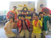 一通り各階を回り終えたところでおみこしの登場、「わっしょい、わっしょい」と威勢の良い掛け声とともに各階を練り歩きました。お部屋に戻られた方などもいらっしゃた為、廊下を練り歩き呼ばれればお部屋の中までお邪魔しました。