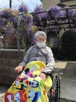 施設の近くのお家で藤の花が綺麗に咲いていたので、