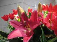 メディス越谷蒲生に来たお花は、チューリップとピンクの百合