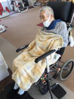 車いすで外に散歩をし、外気浴をしたら少し活気が出現!!