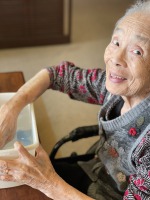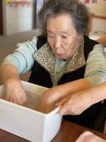 水まんじゅうを詰めたかと思えば、今度はお湯が出てきて手浴の時間。