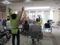 声を出しやすくするための体操や、炭坑節の振り付け、、楽器を使った真っ赤な太陽など、歌だけでなく全身を使って楽しんで頂きました。