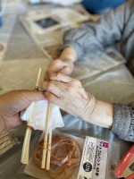 しばし漬け込んだら、手袋をして割り箸や輪ゴムを外していきます。