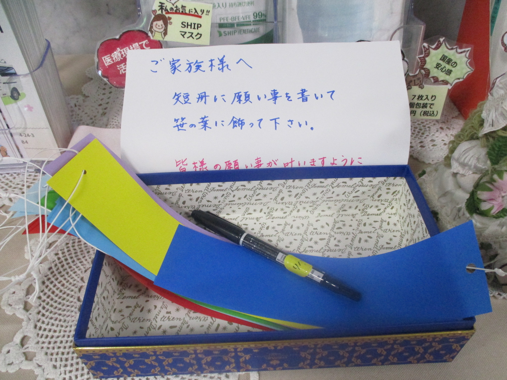 短冊に思い思いの願い事を書いて下さっています(^^♪